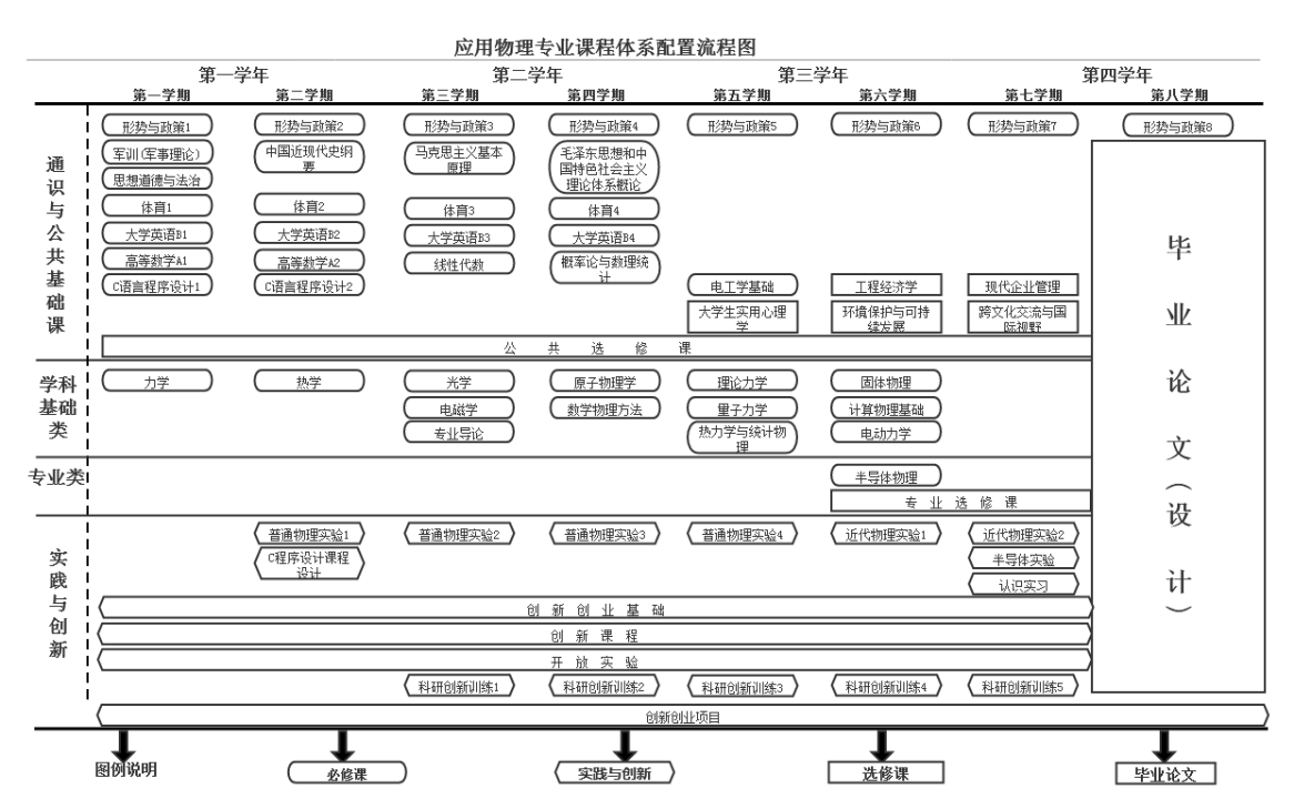 力学、热学、光学、电磁学、原子物理学、数学物理方法、理论力学、热力学与统计物理、量子力学、电动力学、固体物理、计算物理基础。