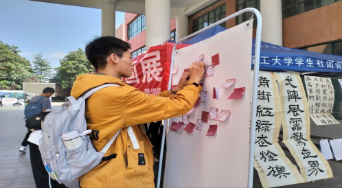 本次活动征集的图片和书画作品以“红色记忆”为主题,通过图片、诗词、书画作品聚焦重大历史事件,回顾祖国波澜壮阔的发展历程,激励同学们继承和发扬伟大的爱国主义精神。活动现场,一幅幅精美的书画、图片作品吸引了众多同学驻足观看。每位同学在志愿者的讲解下了解图片、书画作品背后的故事,并通过书写了革命先辈的名言警句制作书签、诗词问答、写下对祖国的祝福等形式表达了对祖国的热爱和对革命先烈的敬仰。