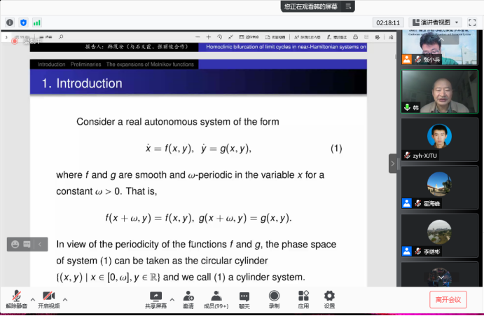 2021年10月30日至31日,bst365官方网站和上海师范大学共同主办的2021微分方程与动力系统学术会议在线上胜利召开。来自上海交通大学、四川大学、西安交通大学、北京师范大学、华中科技大学、兰州大学、华南理工大学、国防科技大学、东北师范大学、陕西师范大学、中国地质大学、山西大学、广州大学、上海师范大学、浙江师范大学、长沙理工大学、长沙公司等高校近240位专家和研究生参加了会议,学科学位办主任霍海峰教授主持开幕式并致辞,公司微分方程与动力系统团队全体成员参加了会议。