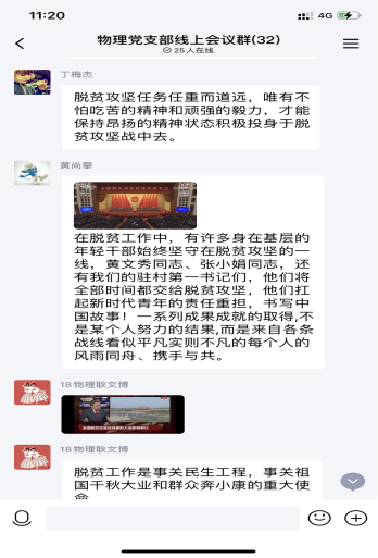 在中国共产党的坚强领导下,全国近1亿贫困人口全部脱贫,第一个百年梦想如期实现。在观看直播的过程中,公司党委各党支部开展了热烈的讨论交流,大家有感于自己家乡面貌的改变、脱贫攻坚先进个人的感人事迹,同时结合脱贫攻坚主题电视剧《山海情》等畅谈对脱贫攻坚的感受。例如力学研究生支部曹晨曦表示:对脱贫攻坚的感受在于家门口越来越多来自农村的农贸产品在出售。从农民们的言语中感受到农村现在路修的好了,种地种菜养猪养鸡有人指导帮扶了,日子也越来越好了。本科生物理支部徐顺芳表示消费扶贫让贫困群众搭上了快车,让群众的腰包鼓起来了。教师党员张晓锋表示全面建成小康社会,是我们党对全国人民的庄严承诺,必须实现。公司党委李建东书记表示:历史伟业充分体现了集中力量办大事的体制优势和中国共产党人咬定青山不放松的精神品格。我们一定要紧密团结在以习近平同志为核心的党中央周围,继承发扬好脱贫攻坚精神,紧紧围绕立德树人根本任务,努力培养德智体美劳全面发展的时代新人,为建设现代化国家做出应有的贡献。