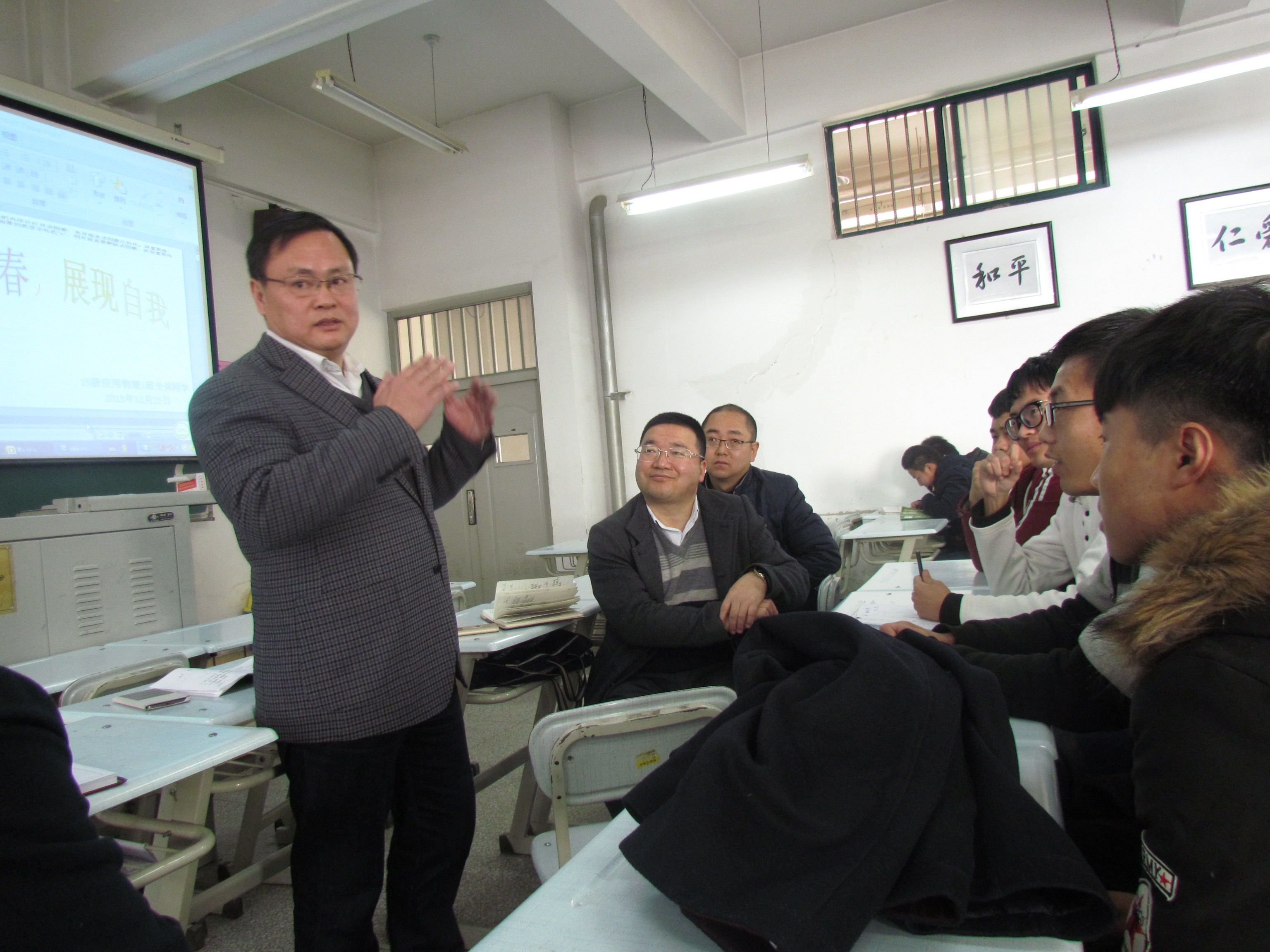 2015年12月25日上午,bst3652015级应用物理专业在西校区1号楼403教室举行了“理赞青春,展现自我”的主题班会,王全进副董事长应邀出席并与联系员工班级的员工做了广泛深入的交流,公司党总支相关负责人及班主任、辅导员老师参加活动。