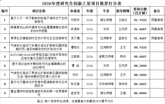 经员工个人申报、公司学术评定委员会组织现场答辩,现将2026年度优秀研究生“创新之星”项目答辩结果公示如下: